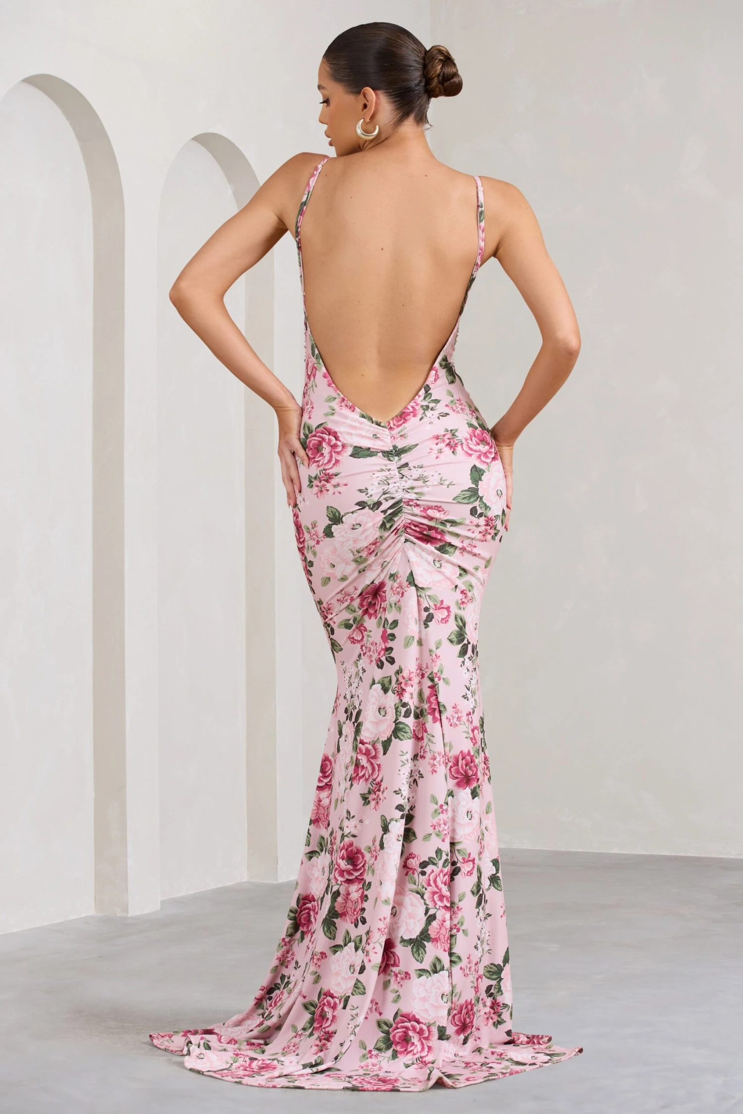 Who says the bride can solely bring the drama? Our latest maxi dress known as Adele is crafted from premium ruched jersey with a pink floral print. A plunging back is supported from delicate straps which can be adjusted for the perfect fit whilst a fishtail skirt showcases a godet train from behind.