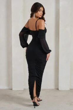 Channel Hollywood glamour as we enter event season in this floor-sweeping black sequin showstopper. Crafted from sparkling stretch sequin fabric, our Alexis maxi dress flaunts a asymmetrical neckline with a single long sleeve and an exposed shoulder. Alexis has a daring thigh high split trimmed with feathers to really bring the glamour.
