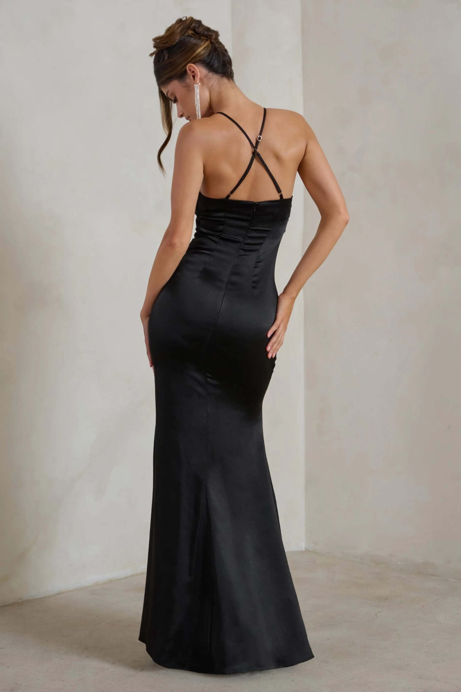 Affectionately named Ami, this classic black maxi will be a best friend in your formal wardrobe rotation. The birthday, wedding or graduation essential is crafted from luxurious weighted satin in a fishtail silhouette with a high side split. Making this maxi dress all the more exquisite is a plunging neckline and a twist of gathered satin.