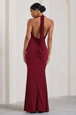 Our latest midi Amy was carefully cut in a sculpting red jersey that clings to each curve. This ruched halter-neck dress has a corset-style bodice thats fitted with supportive padding and wired cups. Try pairing Amy with our red Your Touch gloves for that elegant formal look.Â