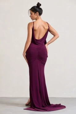 Unstoppable | Burgundy Satin Cross Over Halterneck Maxi Dress