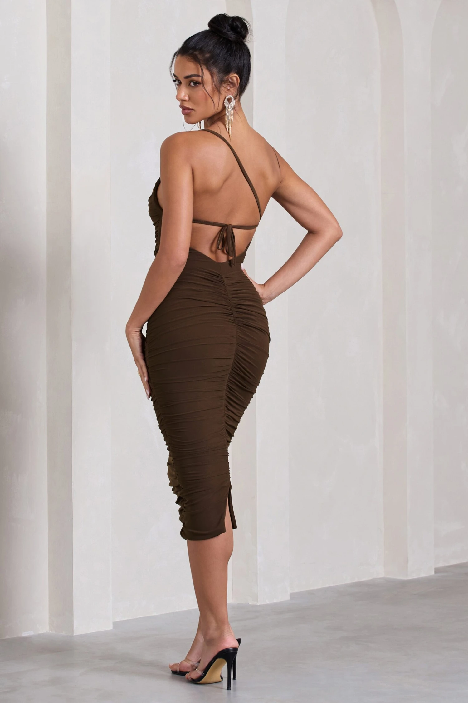 Say hello to Bree, this season’s must-have midi. Crafted in our luxurious jersey fabric, this ruched bodycon dress was designed to accentuate your hourglass silhouette. A low back adds a sensual element to this style, making it a fine option for a romantic dinner or rooftop drinks.