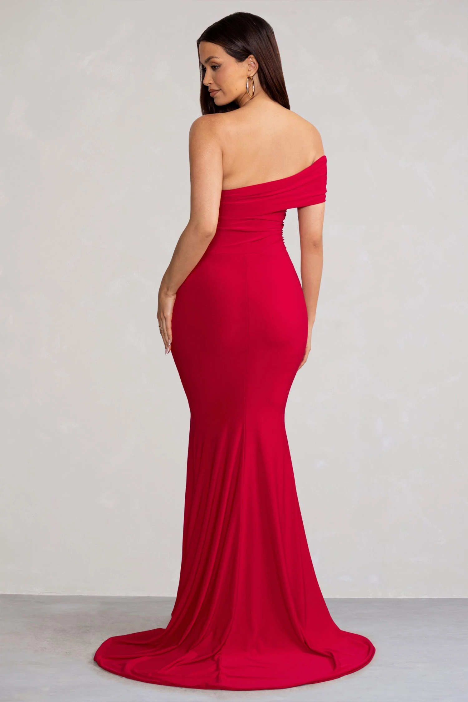 Opt for opulence this season with our formal staple, Forever & Always. Crafted in a rich red shade of a premium stretch jersey, this enchanting maxi dress features an elegant bardot neckline, high-leg split and fishtail train. For an effortless black tie look, team yours with some strappy stilettos and statement earrings.Â