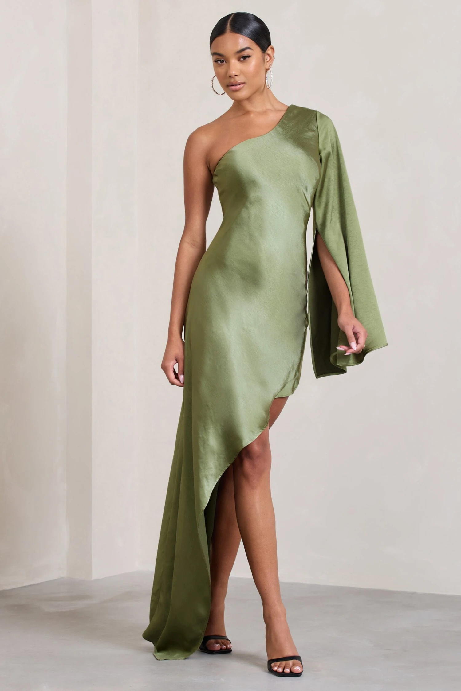 What’s more luxurious or made to flatter than a slinky satin midi dress like Hanna? Turning heads through its asymmetric silhouette featuring one long sleeve that sweeps past your waistline, this olive green maxi dress would be a gorgeous option for wedding guests or for those celebrating a graduation this summer.