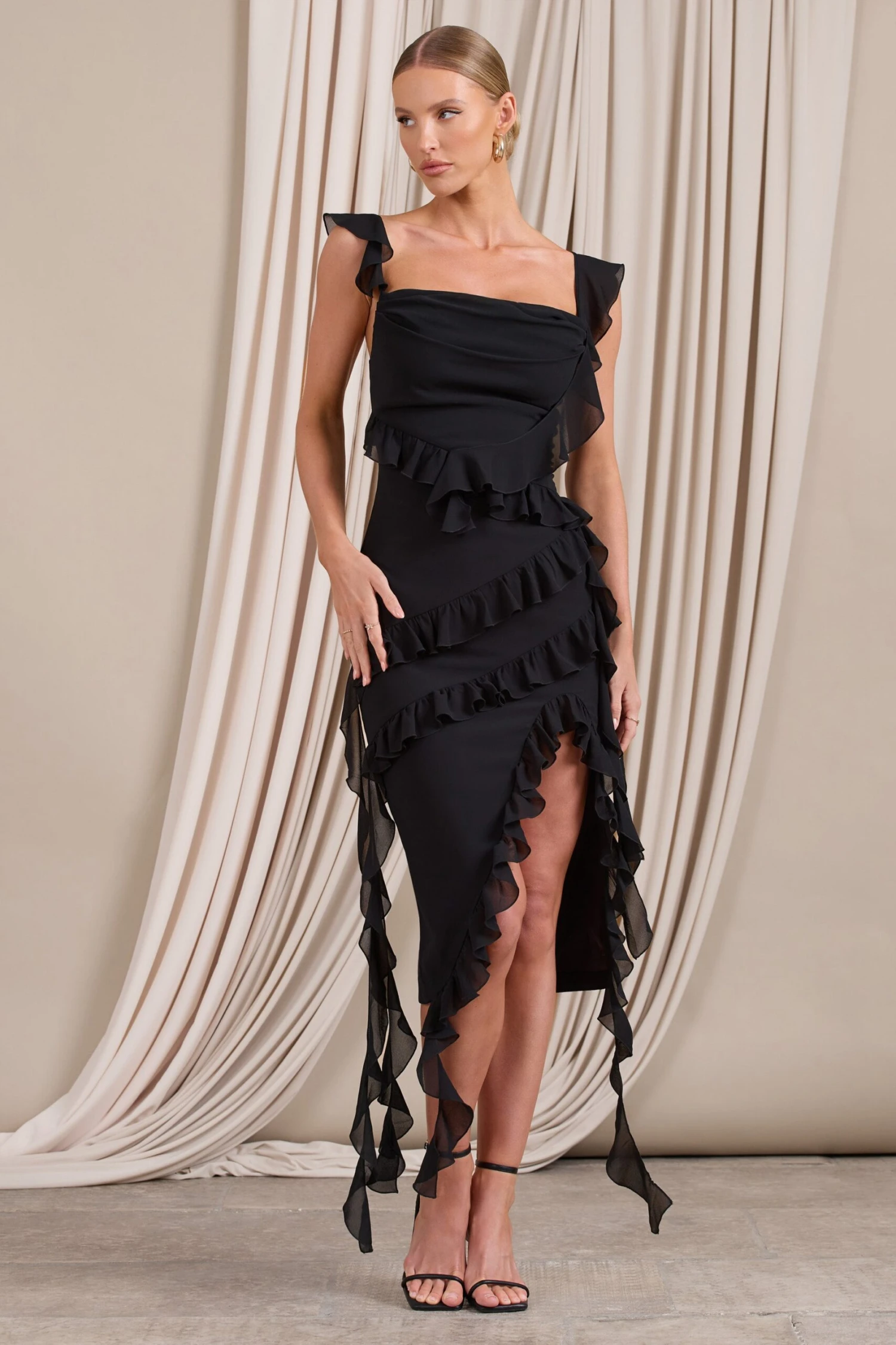 Be the first to review “Havana Heat | Black Cowl Ruffle Chiffon Midi Dress” Cancel reply