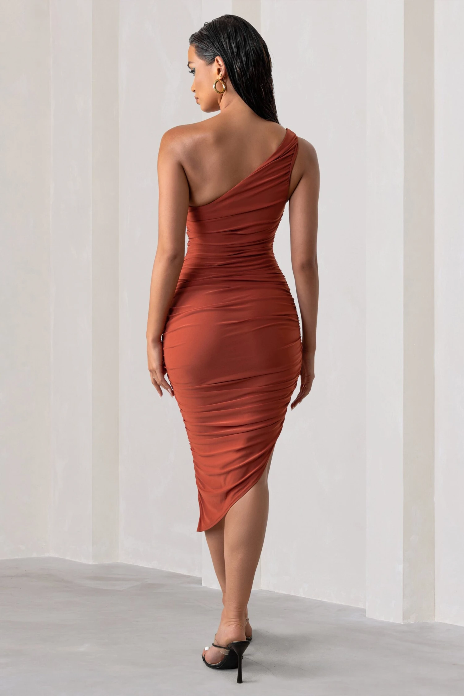 Be the first to review “Late Night | Rust Asymmetric One Shoulder Ruched Midi Dress” Cancel reply