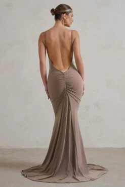 Whether you’re a guest at a wedding or a black tie event, you’ll exude elegance in this burgundy satin showstopper. Cascading effortlessly over your curves, our Lifetime maxi dress features a draped cowl neckline and slim shoulder straps that cross over an open back. More delicate details include a string belt that accentuates your waist subtly.