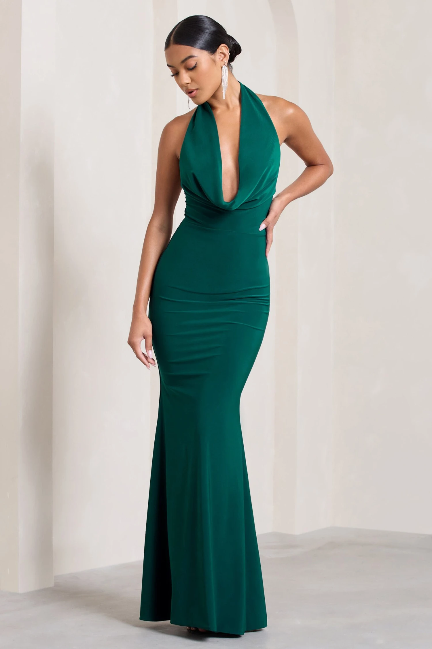 Step out in style in our beautiful Milani maxi dress. Perfect for making an entrance, this bottle green maxi dress features a plunging cowl neck, scoop back design and curve contouring fishtail silhouette to highlight those curves in all the right places. Crafted in our premium jersey fabric, Milani is the ultimate event dress that will never go out of style.