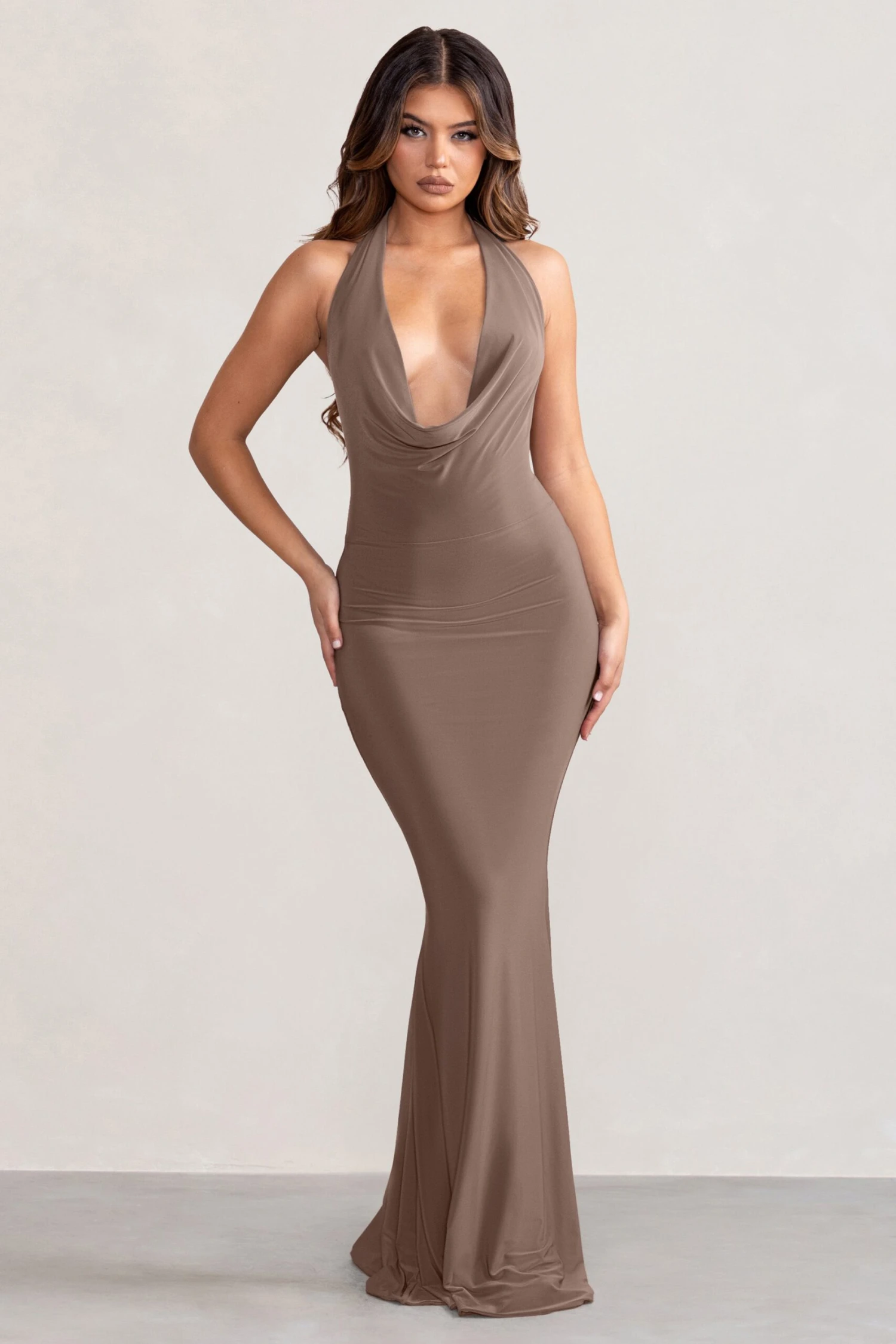 Step out in style in our beautiful Milani maxi dress. Perfect for making an entrance, this mocha maxi dress features a plunging cowl neck, scoop back design and curve contouring fishtail silhouette to highlight those curves in all the right places. Crafted in our premium jersey fabric, Milani is the ultimate event dress that will never go out of style.