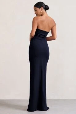 Anisa | Black Halter Neck Bardot Maxi Dress With Thigh Split