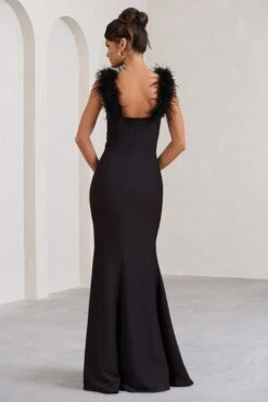 Esmeralda | Navy Velvet Structured Ruffled Bardot Maxi Dress