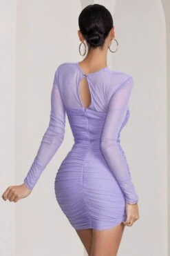 Daiquiri | Lilac Cut Out Ruched Mesh Mini Dress With Long Sleeves