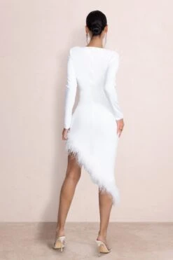 RSVP | Ivory Asymmetric Volume Sleeve Draped Feather Mini Dress
