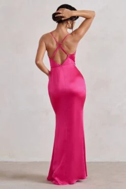 Lifetime | Fuchsia Pink Satin Cowl Neck Maxi Dress With Cross Back Detail