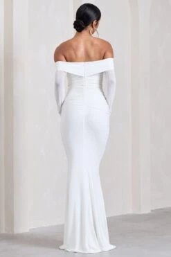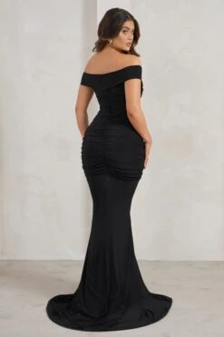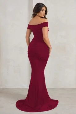 Apolline | Berry Off The Shoulder Ruched Fishtail Maxi Dress
