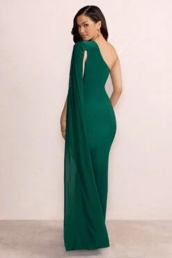 Afterparty | Bottle Green Ruched Asymmetric Bodycon Maxi Dress