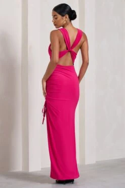 Dominique | Hot Pink One Shoulder Cape Sleeve Bodycon Maxi Dress