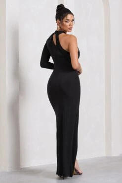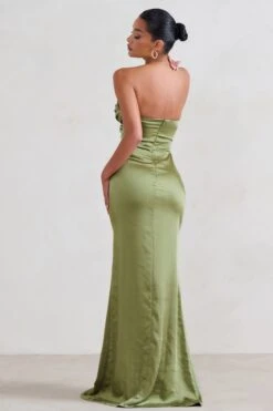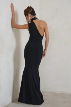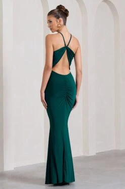 Brianna | Bottle Green Sleeveless Halter-Neck Open-Back Maxi Dress