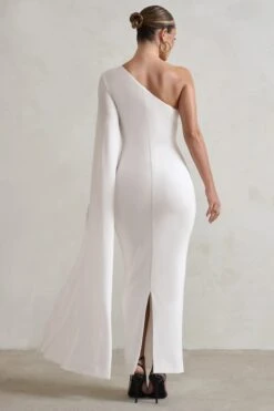 Dominique | Grey One Shoulder Cape Sleeve Bodycon Maxi Dress