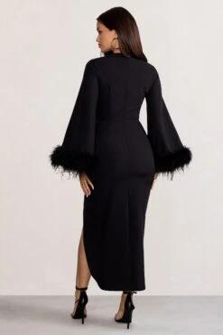 Este | Navy Asymmetric One Sleeve Maxi Dress With Ruched Waistline And Side Split