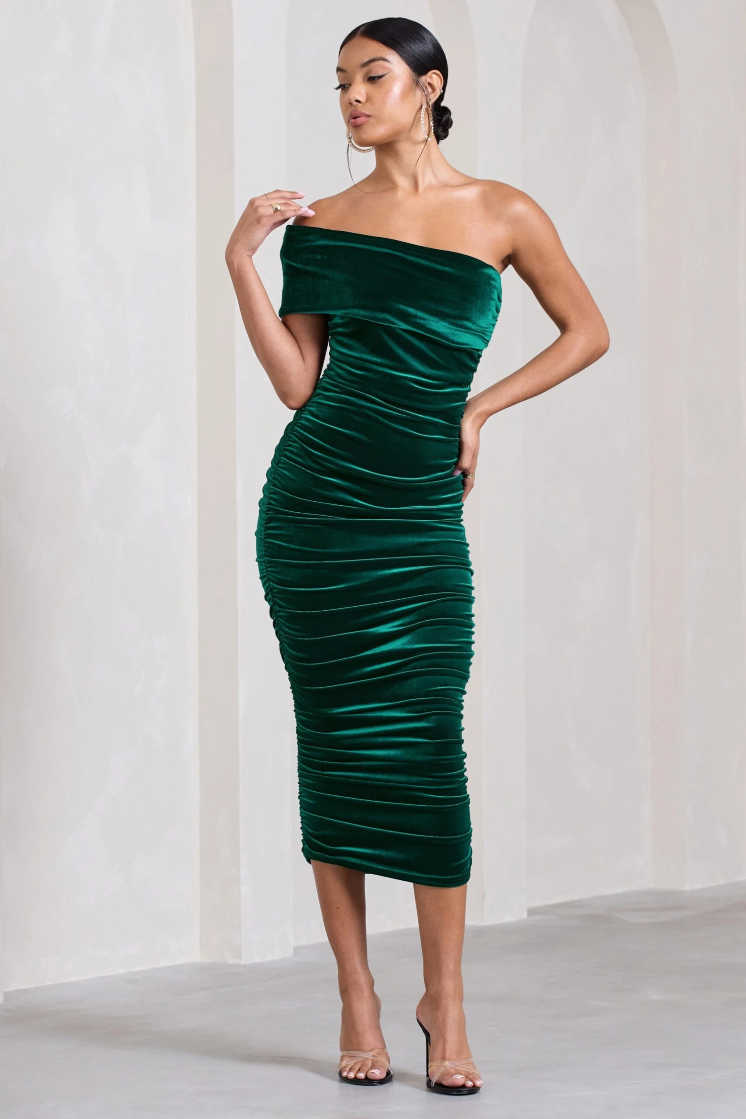 Prepare to be remembered at your next event in our elegant aptly-named midi, Remember Me. Arriving in a rich green shade, this asymmetric dress has been crafted in our signature stretch velvet known for its effortless sculpting capabilities. Try pairing Remember Me with a strappy stiletto for the perfect formal look.