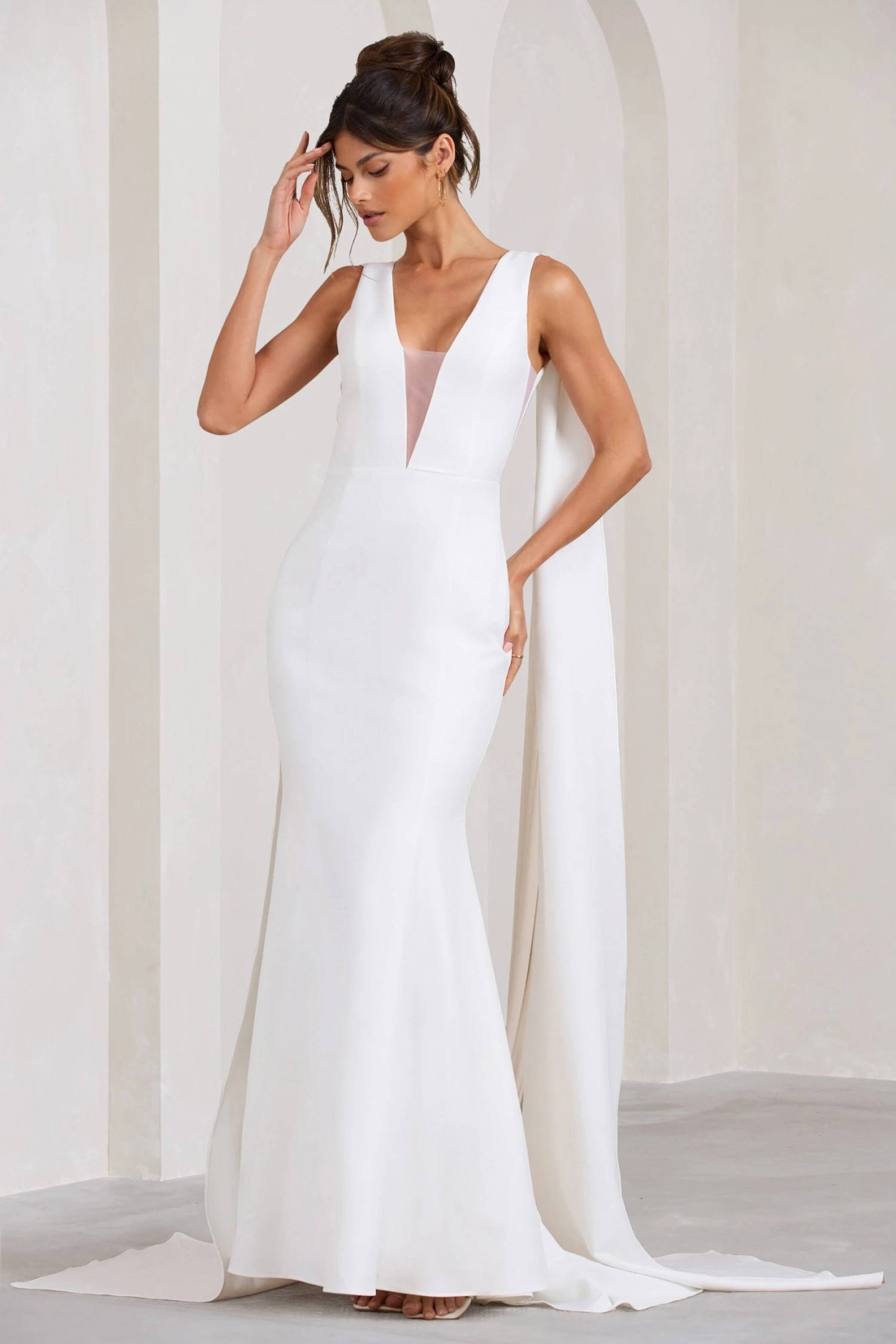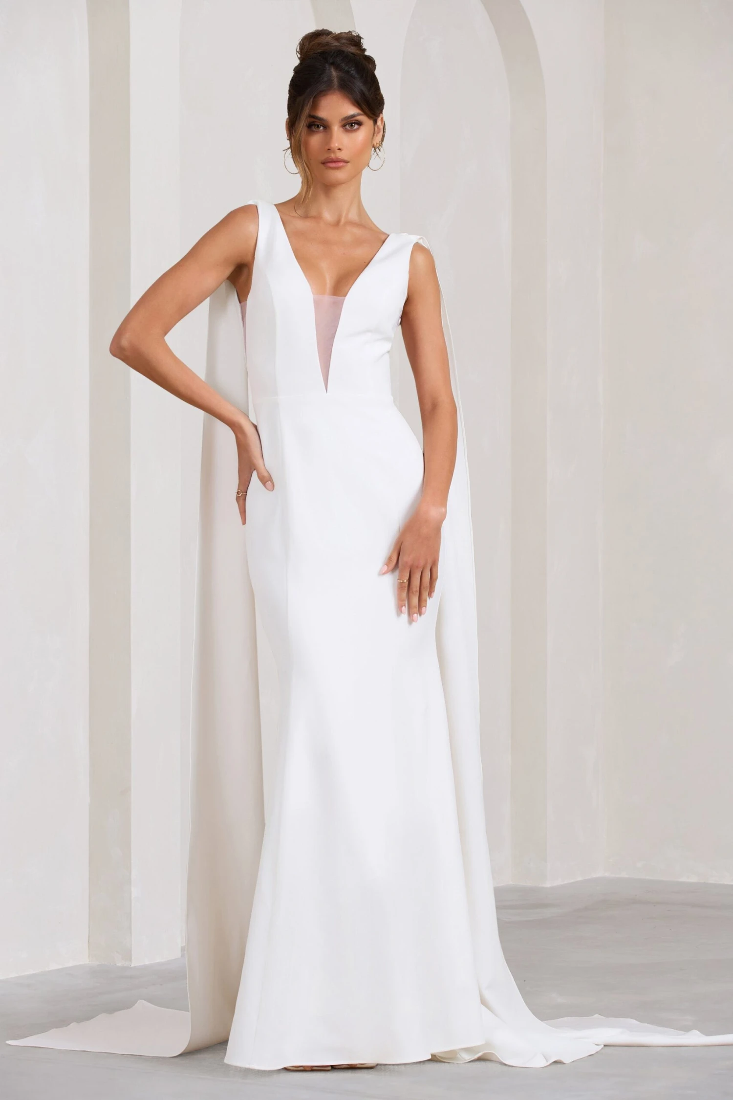 Be the first to review “Rosaline | White Plunging Fishtail Maxi Dress With Cape” Cancel reply