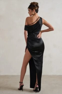 The effortless elegance of draped white satin is celebrated in our Select maxi dress, arriving an asymmetric silhouette with one sleeve resting off the shoulder. Gentle gathers and a striking side split highlight the fabric but also your figure. Pair this maxi with strappy stilettos and gold hoops for a unforgettable birthday or date night ensemble.