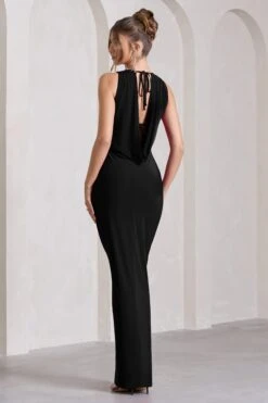 Crafted in a premium stretch jersey highlighted by flattering ruching, This Way is a form-flattering option to see you through any event. This one-shoulder brown maxi dress is detailed by a striking strappy open-back before finishing with a curve-contouring asymmetric hemline. Try pairing This Way with some strappy stilettos for the perfect date night ensemble.Â