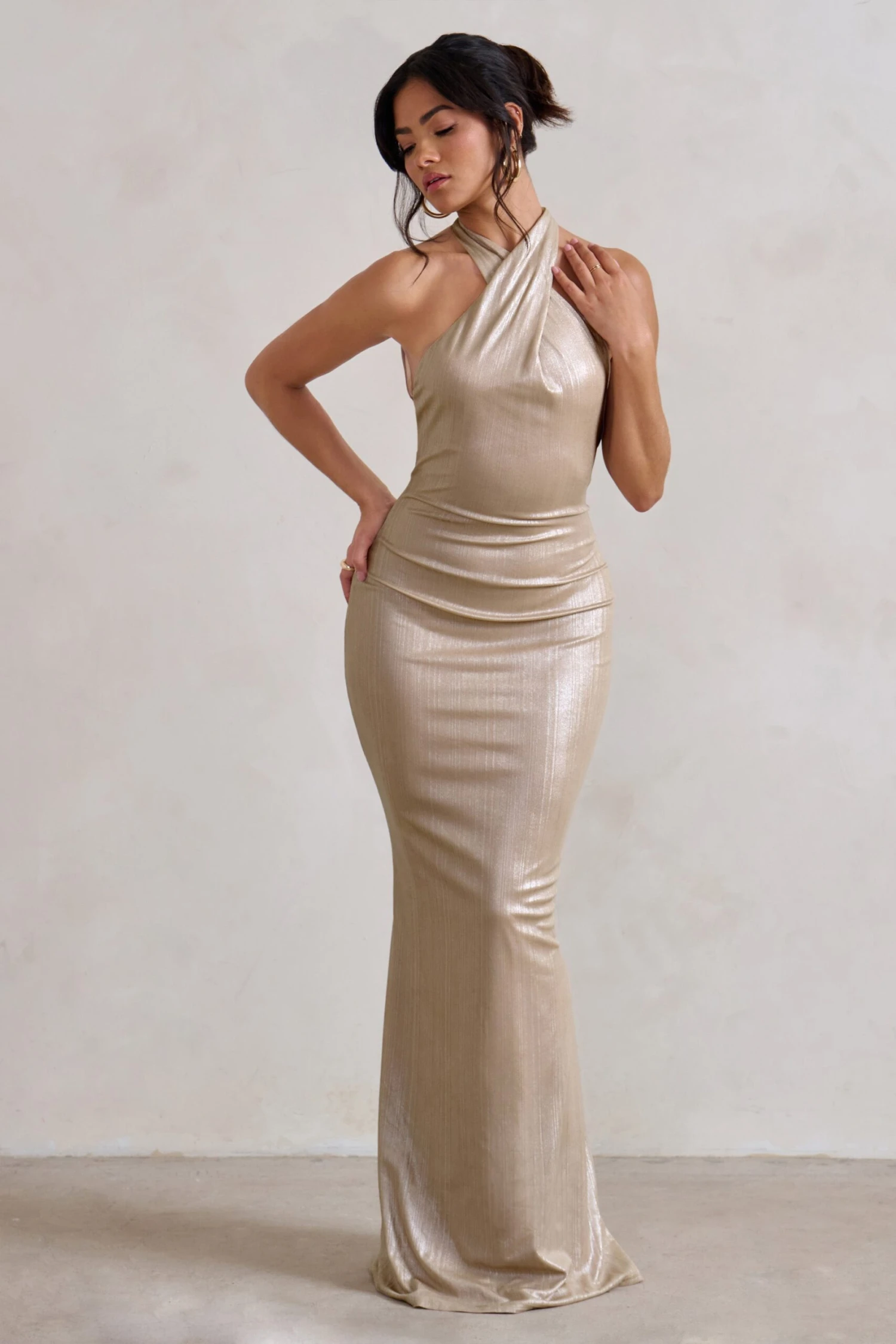 You’ll feel sophisticated, seductive and truly unstoppable in this aptly-named maxi dress. Presented in lustrous champagne satin and designed to contour your curves, the party season staple features a crossed halter collar which cascades into a floor-length fishtail skirt. The hourglass silhouette of Unstoppable makes it an ideal dress for your next wedding, birthday or black tie event.